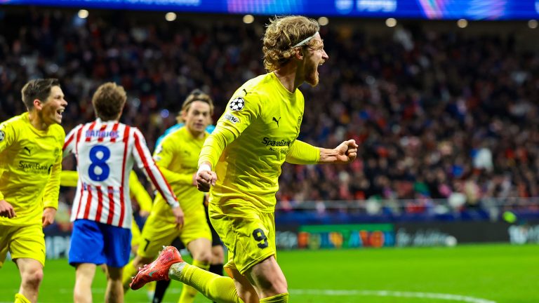 MÅL: Kasper Høgh feirer mål mot Atlético Madrid. Foto: Thomas Andersen / NTB