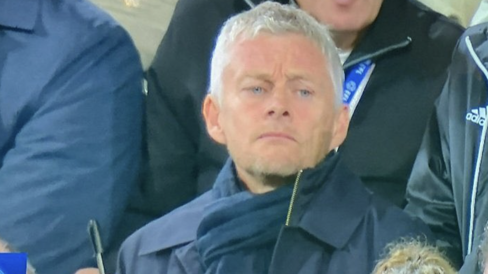 Ole Gunnar Solskjær ble fanget av TV-kameraene på tribunen ved flere anledninger. Hans tidligere assistenttrener i Manchester United, Kieran McKenna, er manager for Ipswich.