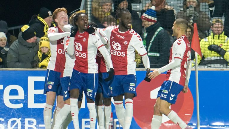 KFUM jubler etter sitt første mål i eliteseriekampen i fotball mellom KFUM og Bodø/Glimt på KFUM Arena.